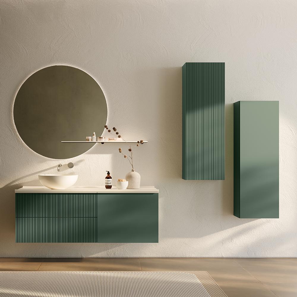 A perfect balance of style and functionality. Rigo Collection is made unique by its versatile and innovative soul. The modular design allows you to combine textured modules with smooth surfaces and to play with colours and finishes, glossy or matt. The real distinguishing feature of the range is the shaped top, characterised by a raised edge that extends both to the front and to the back.